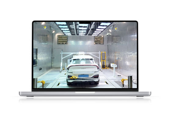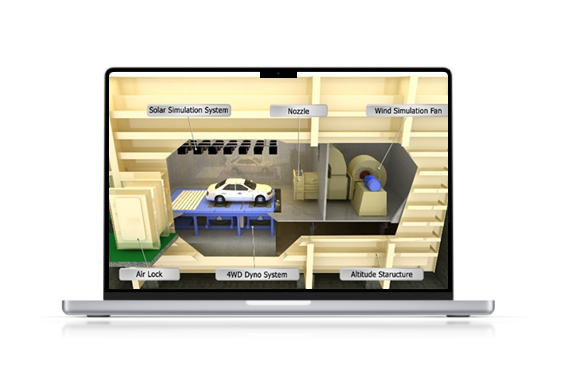 The environmental chamber precisely controls conditions such as temperature, humidity, solar load, altitude, rainfall, snowfall,